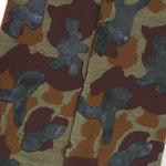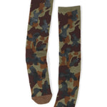 Camouflage pattern knee-high socks made of thick, stretchy, and elastic fabric. The black camouflage pattern is printed only on the front side, giving it a rough, crisp feel and a slight sheen. *The print on this product is not permanent. It may peel off due to friction when worn or repeated washing. Please be careful when wearing and storing. 58% cotton, 19% acrylic, 20% nylon, 3% polyurethane